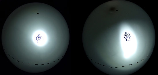 Ein Luftballon wird aufgeblasen und mit einem Stift auf der Mitte des Luftballons eine Kreislinie gezogen. Diese Linie soll den Äquator darstellen. Zur Veranschaulichung für die Schüler eignet sich ein Globus. Der Globus hilft auch, die Lage von Deutschland auf dem Ballon zu markieren. Ein Schüler hält den Luftballon schräg, etwa der Neigung der Erdachse beim Globus entsprechend zur Lampe hin (Sommer) und ein weiterer Schüler richtet die Taschenlampe parallel zum Fußboden so auf den Ballon, dass die Markierung für Deutschland beleuchtet wird. Der dritte Schüler umrandet mit dem wasserfesten Stift den Lichtfleck auf dem Luftballon. Jetzt wird der Ballon entsprechend der Position im Winter schräg von der Lampe weg gehalten und die Markierung für Deutschland wie eben beleuchtet. Auch dieser Lichtfleck wird mit dem Stift umrandet.
